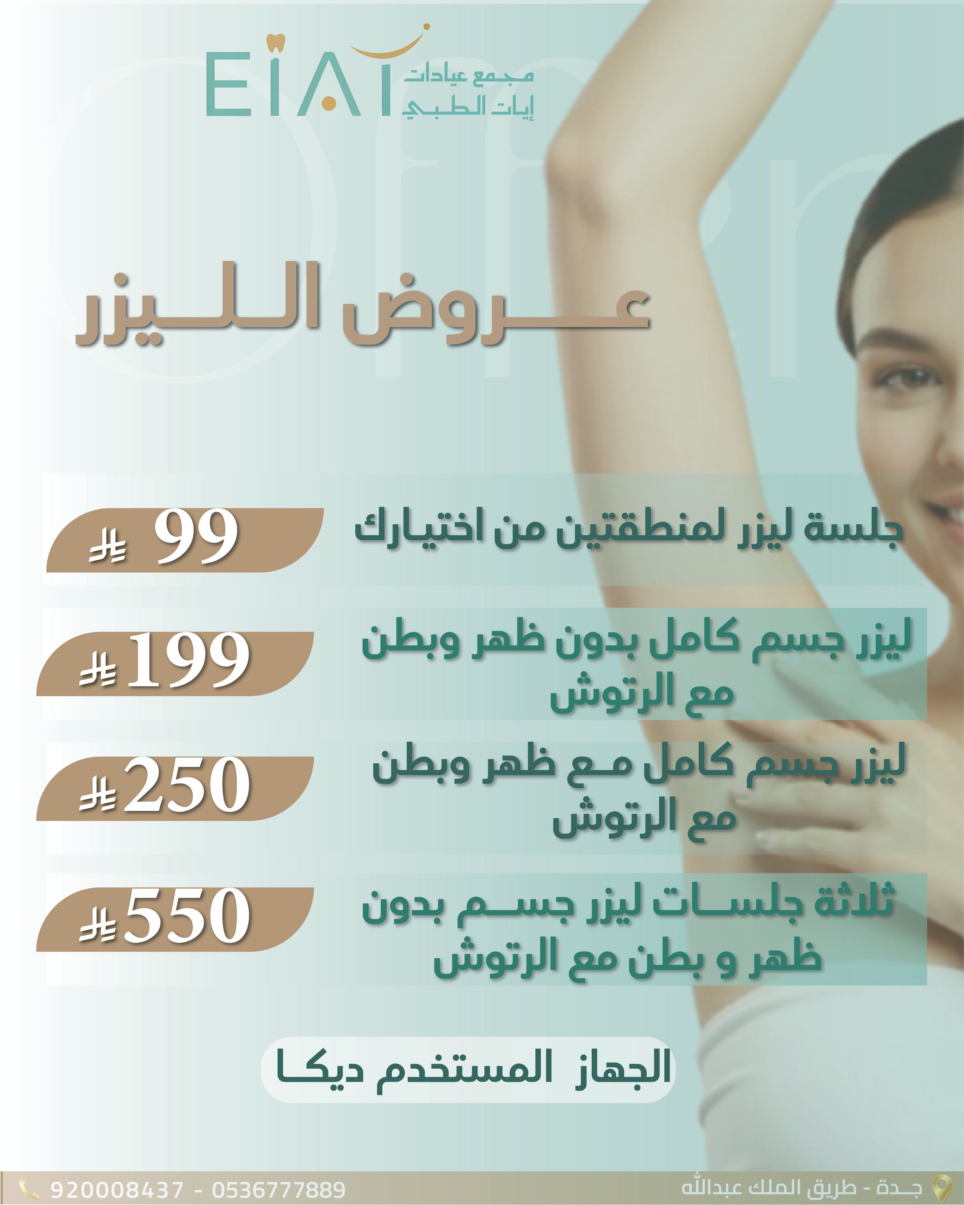 الليزر يمنح بشرتك نعومة لا تقاوم .... لا تفوتي عروضنا